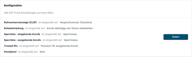 Unter „Meine Daten“ → „Telefoneinstellungen“ finden Sie unter „Verbindungen“ eine Übersicht Ihrer SIP Trunks.