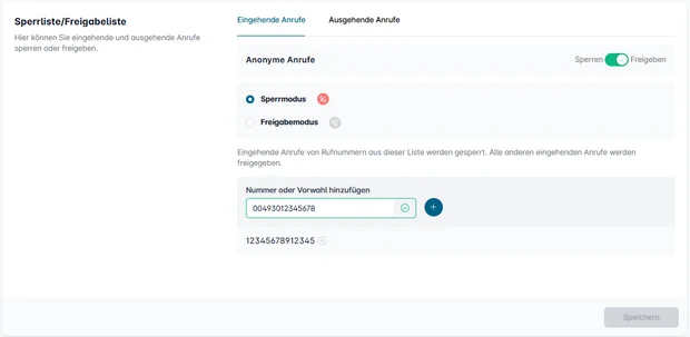 Nachdem Sie alle Anpassungen vorgenommen haben, klicken Sie bitte auf Speichern und schließen die Einrichtung Ihrer Sperr- oder Freigabeliste ab.