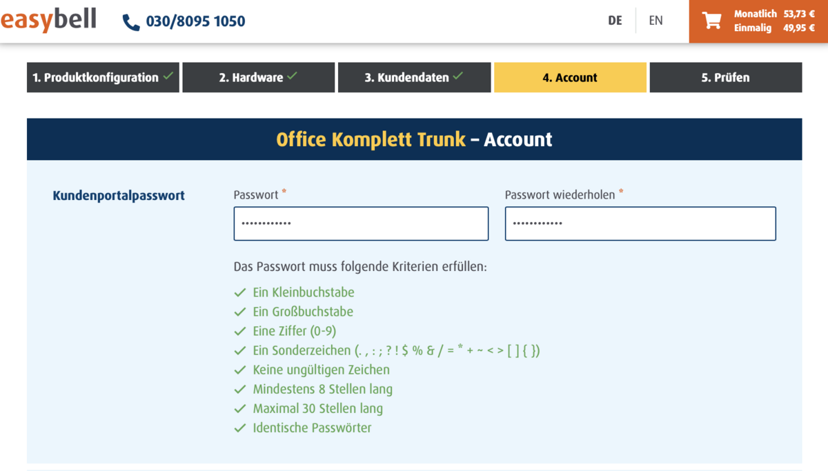 Schritt 4: Erstellen Sie Ihren easybell-Account.