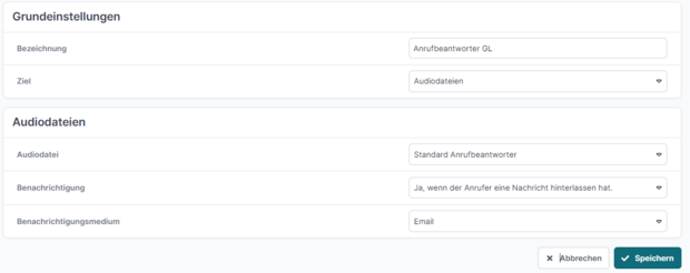 Im unteren Bereich der Ansicht kann nun die gewünschte Audiodatei, Benachrichtigungstyp und Benachrichtigungsmedium ausgewählt werden.
