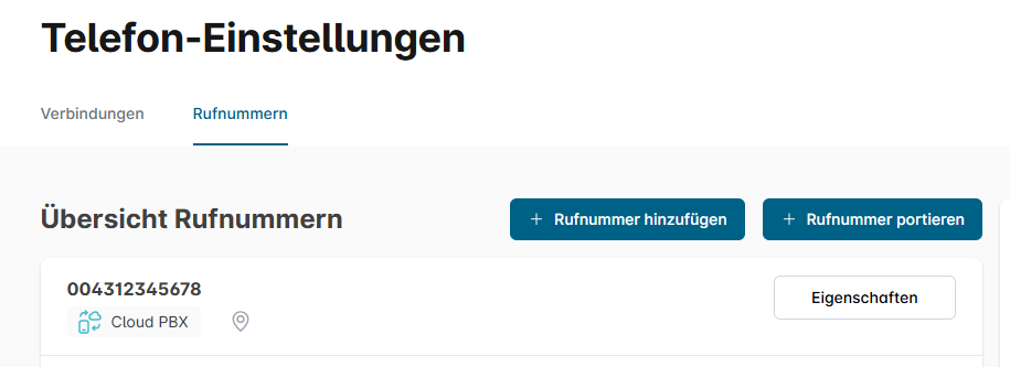 Klicken Sie neben der gewünschten Rufnummer bitte auf das Feld „Eigenschaften".