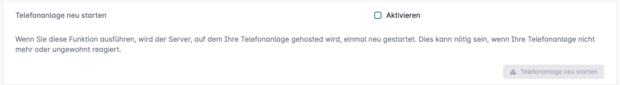 Die Cloud Telefonanlage wird beendet und anschließend neu gestartet. In diesem Zuge werden alle aktiven Anrufe beendet.