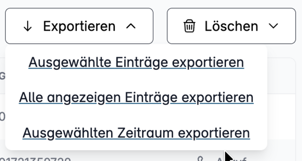 Über die Auswahl „Exportieren“ können Sie die Anrufliste sichern.