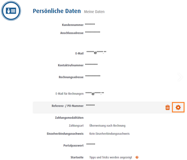 In der Übersicht Ihrer persönlichen Daten finden Sie auch eine Zeile „Referenz- / PO-Nummer“.