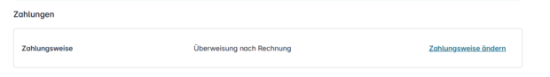 Wählen Sie im Seitenmenü bitte „Rechnungen & Zahlung”. Dort können Sie im Abschnitt „Zahlungen“ Ihre Zahlungweise ändern.