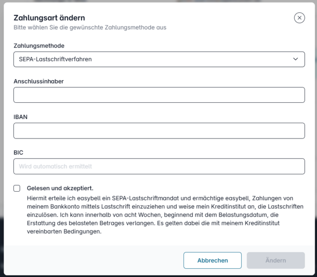 Sie können die Bankdaten Ihres Easybell-Vertrags in der Regel selbst ändern.