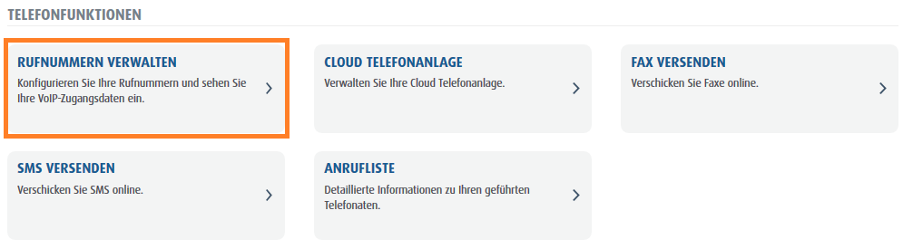 3. Klicken Sie dazu unter „Telefonfunktionen“ auf „Rufnummern verwalten“.