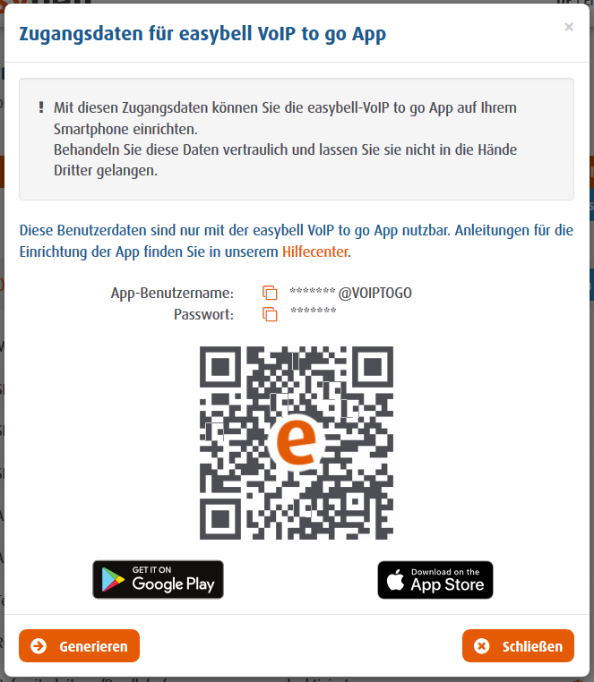 2. Generieren Sie Ihre persönlichen Logindaten in Ihrem easybell-Kundenportal.
