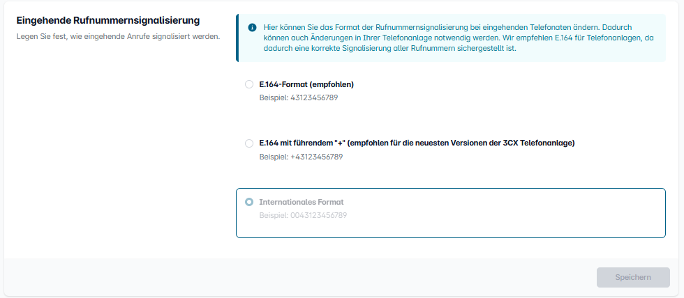 Voraussetzung: Rufnummernsignalisierung im Internationalen Format.