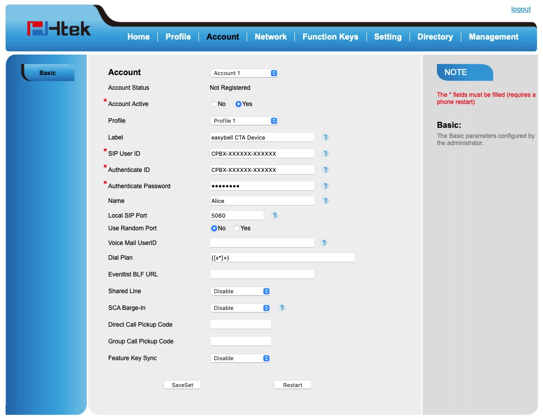 Htek IP-Telefon manuell als Endgerät in der Cloud Telefonanlage einrichten