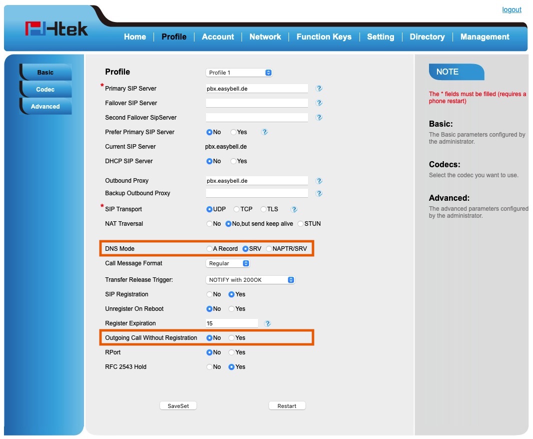 | Outbound Proxy | pbx.easybell.de |