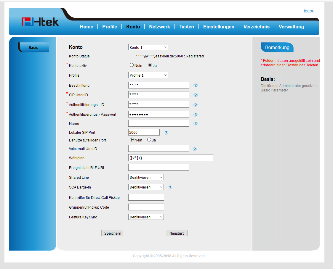 Htek UC924 mit einem VoIP-Anschluss nutzen