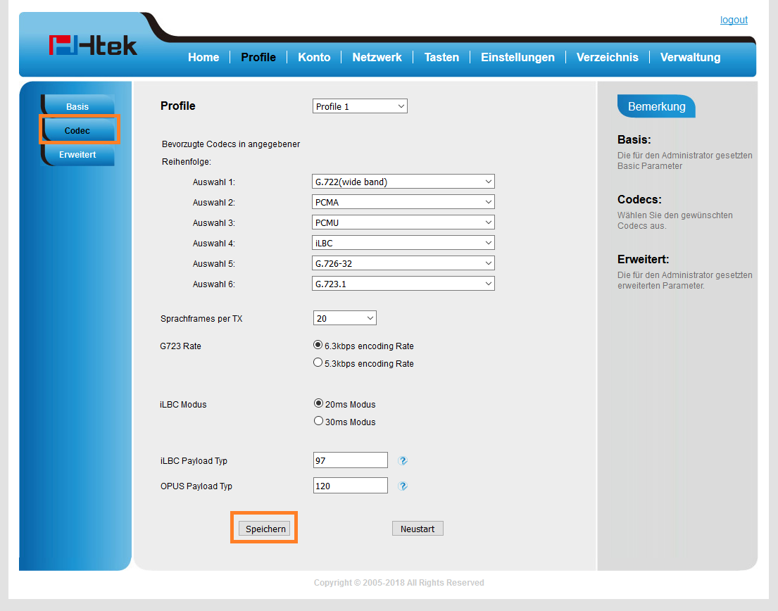 Wichtiger Hinweis: Bitte stellen Sie sicher, dass Sie die aktuelle Firmware für Ihr Gerät verwenden. Diese finden Sie auf der Website von Htek.
