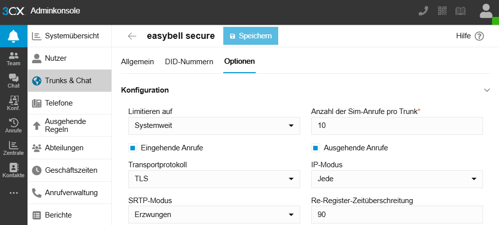 Um bei ausgehenden Anrufen eine der Trunk-Hauptnummer abweichende Rufnummer zu übertragen, müssen Einstellungen in der 3CX-Telefonanlage sowie dem Easybell-Kundenportal vorgenommen werden.