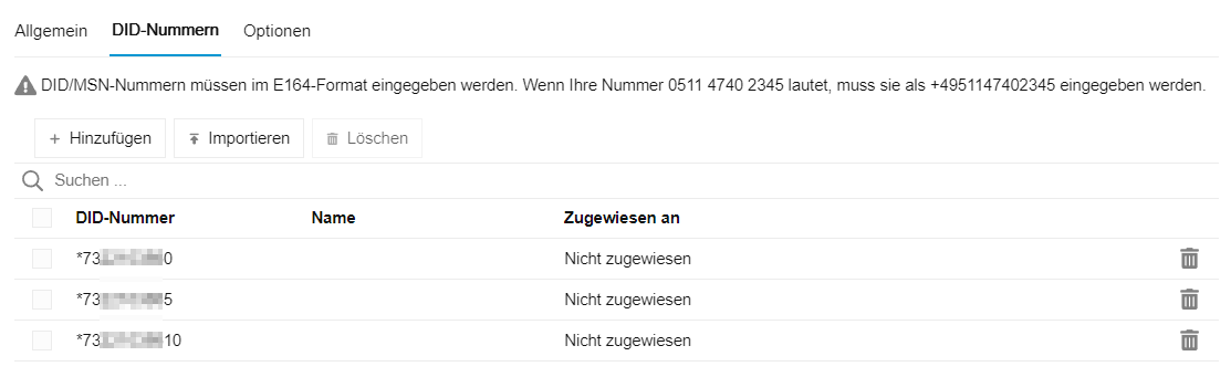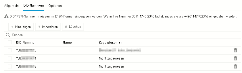 3. Durchwahlen (DDI/DID) einrichten