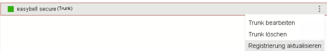 Falls dies nicht der Fall ist, klicken Sie bitte auf „Registrierung aktualisieren“. Sollte auch das nichts ändern, überprüfen Sie bitte, ob die SIP-Zugangsdaten des Trunks korrekt hinterlegt wurden.