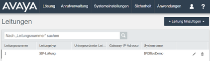 Klicken Sie in der Admin-Oberfläche Ihrer Avaya IP Office Telefonanlage auf „Systemeinstellungen“ → „Leitungen“ → „Leitung hinzufügen“.