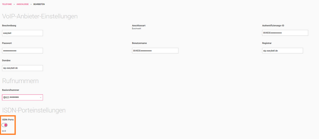 - Hier aktivieren Sie den entsprechenden ISDN-Port.