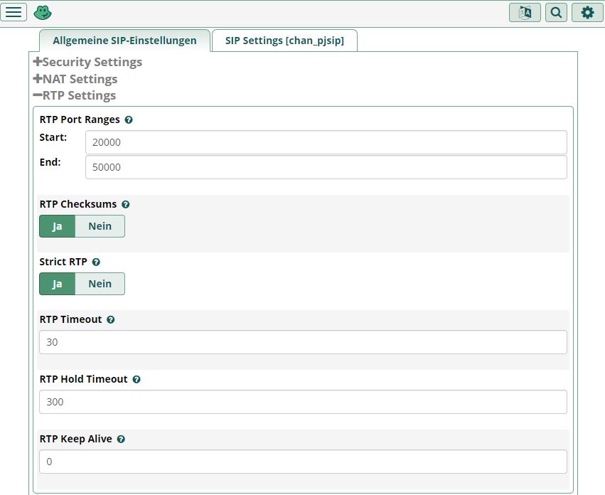 Bitte ändern Sie die Einstellung „RTP Port Ranges“ wie folgt: