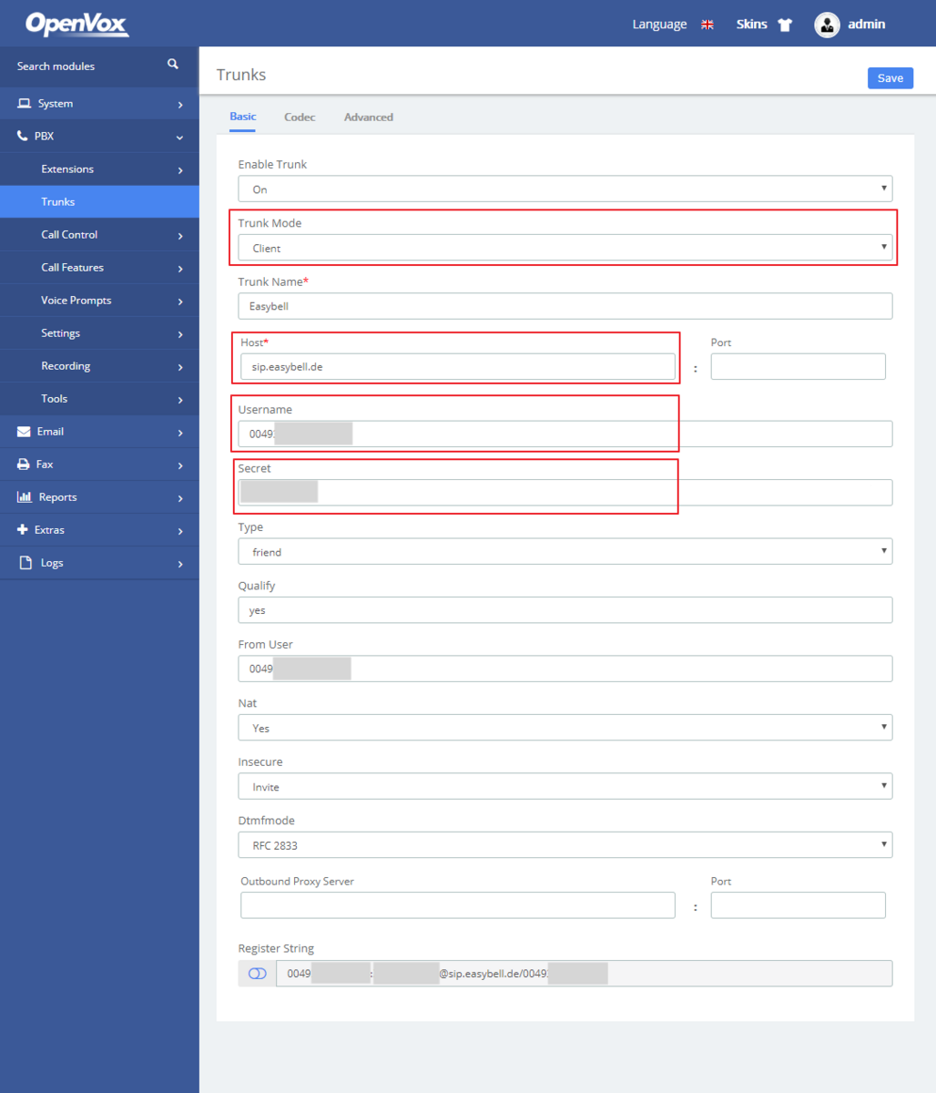 Diese Anleitung soll Ihnen helfen, die OpenVox UC Series IPPBX mit dem SIP Trunk von easybell reibungslos einzurichten.