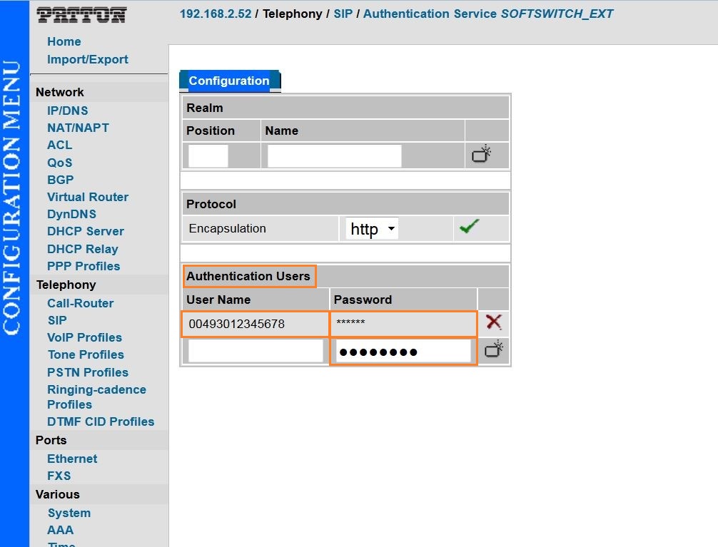 SIP → Authentication Services → SOFTSWITCH_EXT