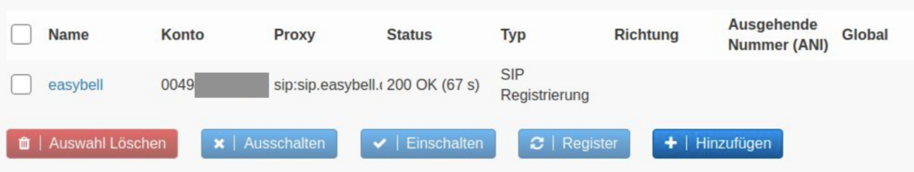 Gehen Sie anschließend zurück zur Übersicht der „VoIP Provider“, um den Status der Leitung zu sehen. Die Leitung sollte inzwischen als Status „200 OK“ anzeigen.