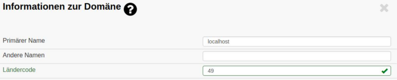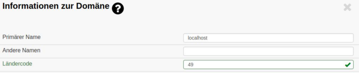 Um die korrekte Darstellung der Rufnummern sicherzustellen, klicken Sie bitte in der Liste der Domänen auf den Stift auf der rechten Seite der Tabelle. Tragen Sie als Wert "49" ein und speichern Sie die Änderung.