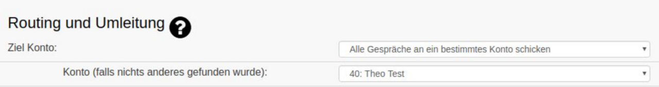 Danach sehen Sie die neu angelegte Leitung. Klicken Sie auf den Namen der Leitung und scrollen Sie zu „Routing und Umleitung“. Wählen Sie dort das Konto aus, auf dessen Nebenstelle eingehende Anrufe gelenkt werden sollen.