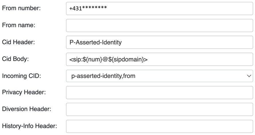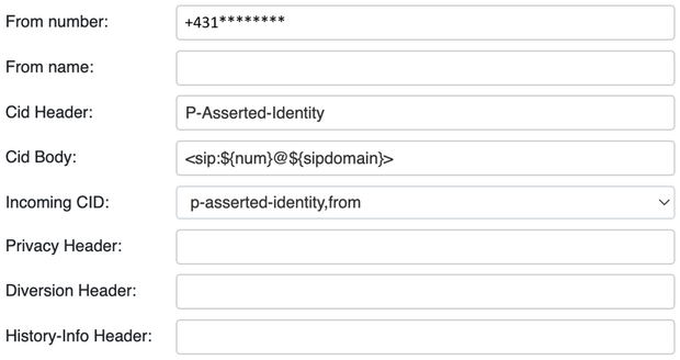 In dieser Anleitung nutzen wir für CLIP no screening bzw. zur Übergabe der Caller ID / das Feld P-Asserted-Identity (PAI).
