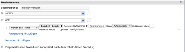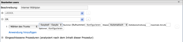 Gehen Sie zum Punkt „Wählplan“ und bearbeiten Sie die Regel „users“.