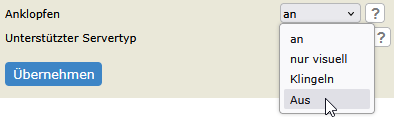 Beim Eintrag „Anklopfen“ können Sie die Funktion deaktivieren. Klicken Sie anschließend bitte auf „Übernehmen“ um die Änderungen anzuwenden.