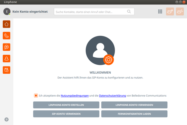 Installieren Sie sich zuerst Linphone aus Ihrer Anwendungsverwaltung und starten Sie das Programm.