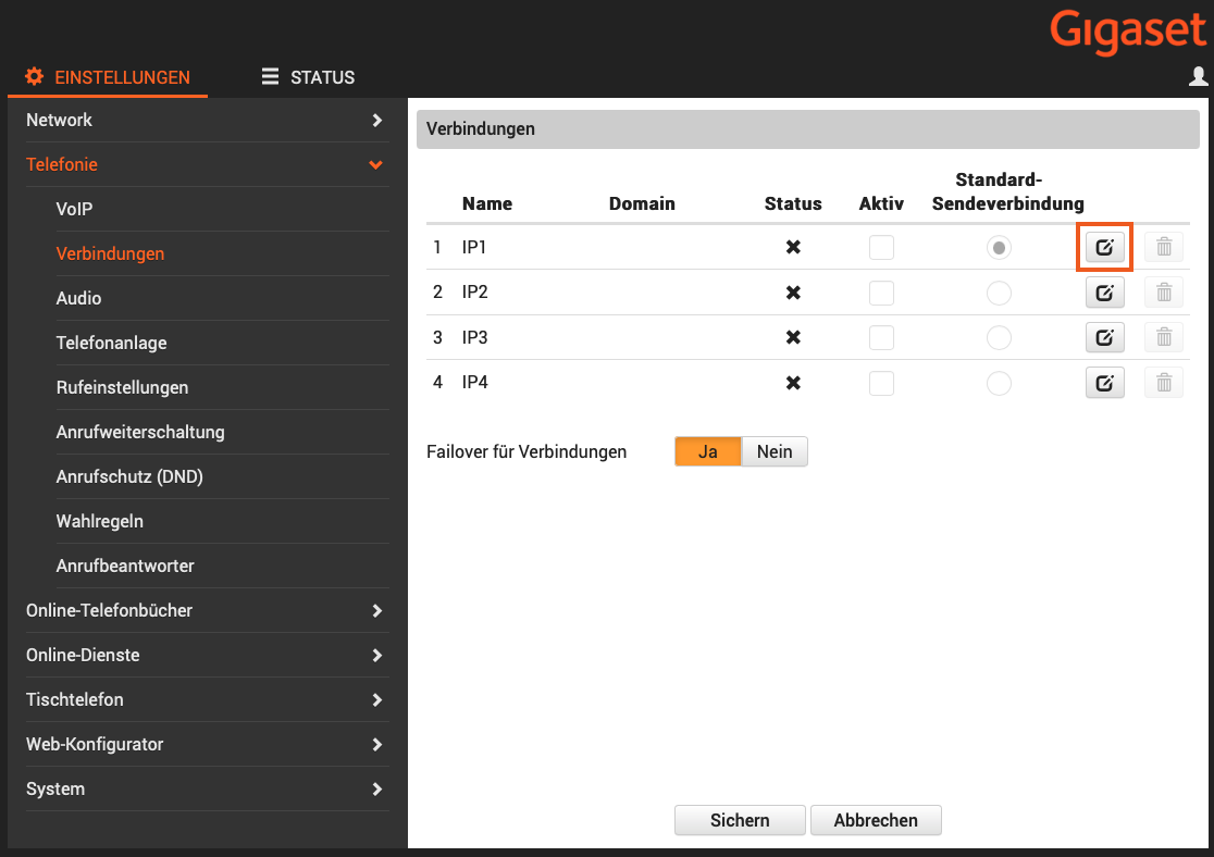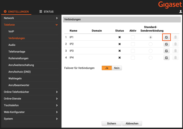 Bearbeiten Sie nun eine der Verbindungen indem Sie auf das Symbol mit dem Stift klicken (im Screenshot orange markiert).