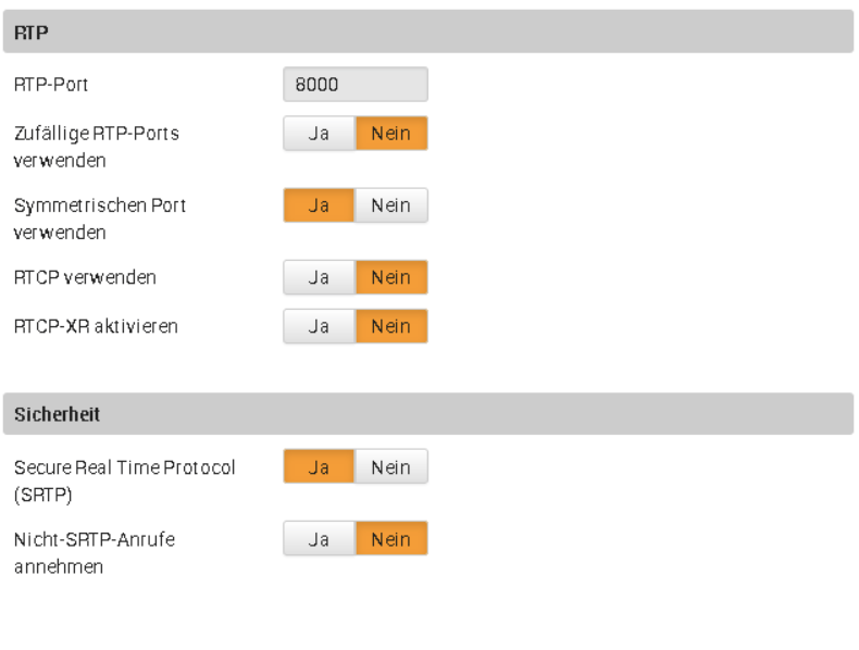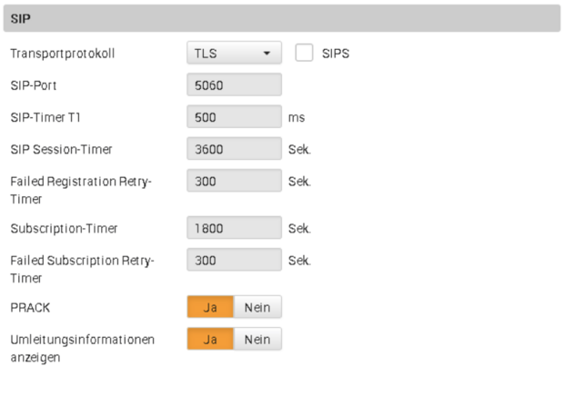 Gehen Sie dazu im IP-Telefon zu Einstellungen → Telefonie → VoIP und ändern Sie die folgenden Einstellungen: