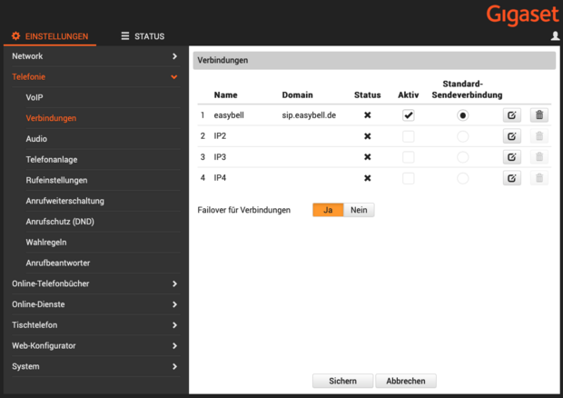Zunächst können Sie der Verbindung einen eindeutigen Namen geben (bspw. „easybell“).