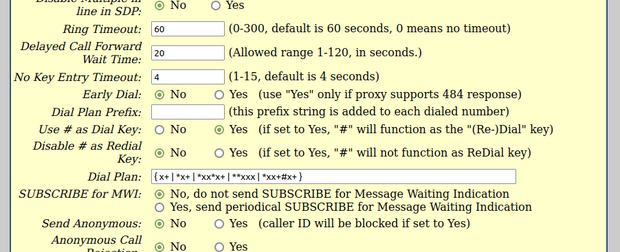 Der Punkt „Dial Plan“ muss auf folgenden Wert angepasst werden:
