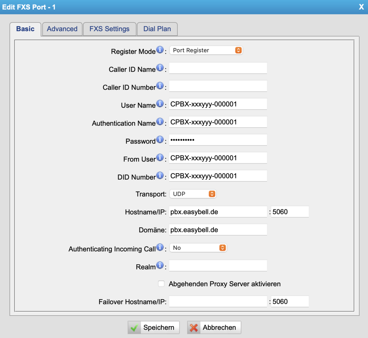 | CallerID Number | SIP-Benutzername | kann leer bleiben |