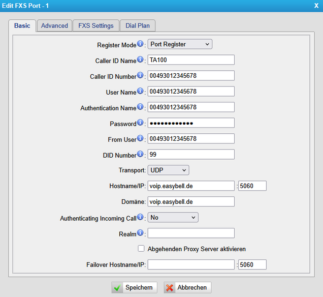 | Authentication Name | SIP-Benutzername | SIP-Benutzername |