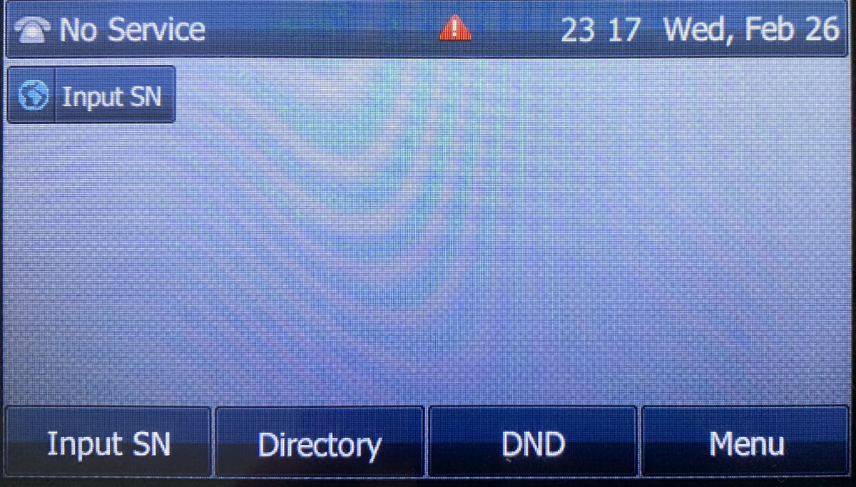 Die Abfrage dieses Teils der Seriennummer kann erfolgen, wenn Sie Ihr zuvor automatisch konfiguriertes Yealink Telefon auf Werkseinstellungen zurücksetzen und die automatische Endgerätekonfiguration (ACS) in der Cloud Telefonanlage für dieses Gerät weiterhin aktiviert haben. Nach dem Neustart des Telefons kann es passieren, dass Ihr Telefon statt sich wie gewohnt zu registrieren, die folgende Ansicht zeigt: