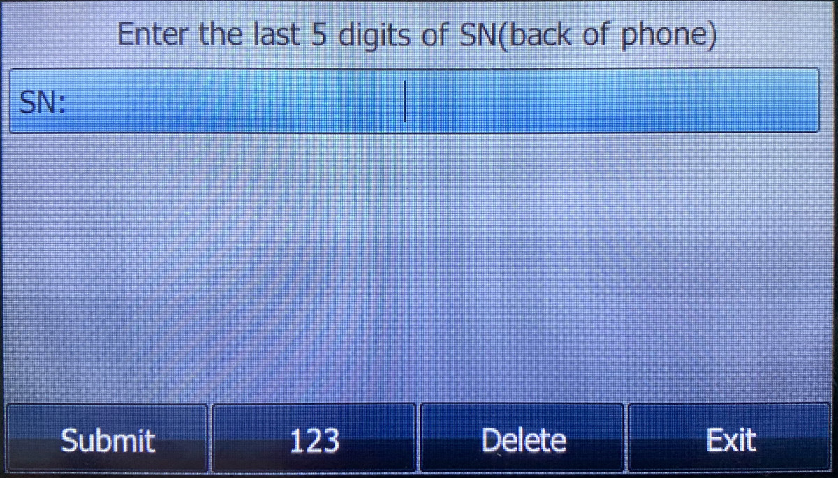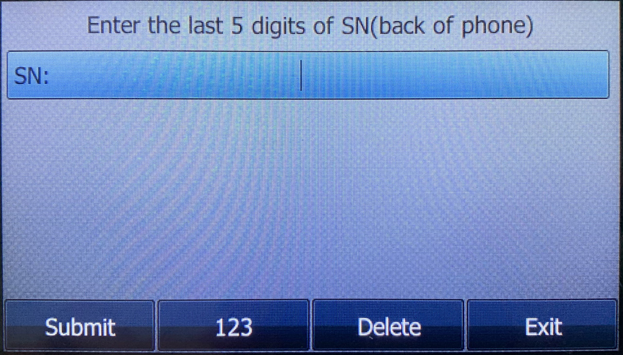 Wählen Sie in diesem Fall "Input SN" und geben Sie die letzten fünf Stellen der Seriennummer Ihres Yealink Telefons ein. Drücken Sie nach der Eingabe "Submit":