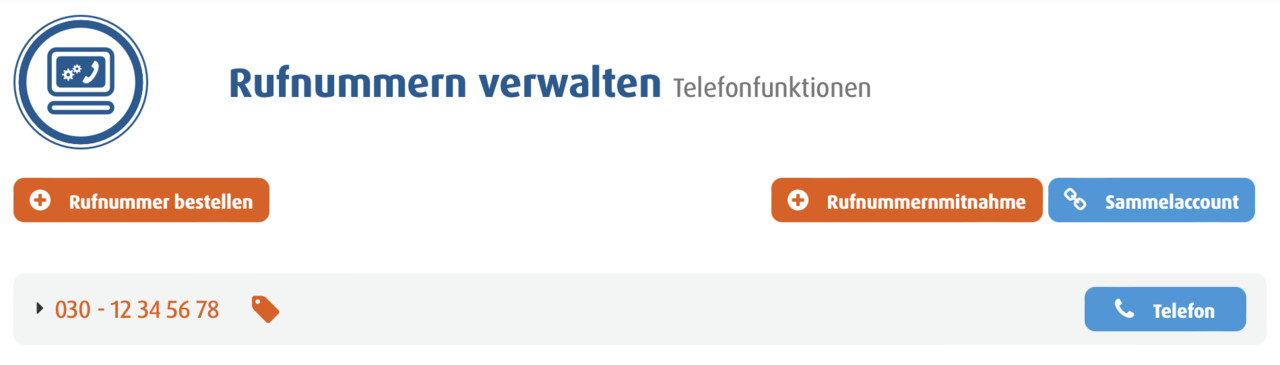 Klicken Sie unter „Telefonfunktionen“ auf „Rufnummern verwalten“.