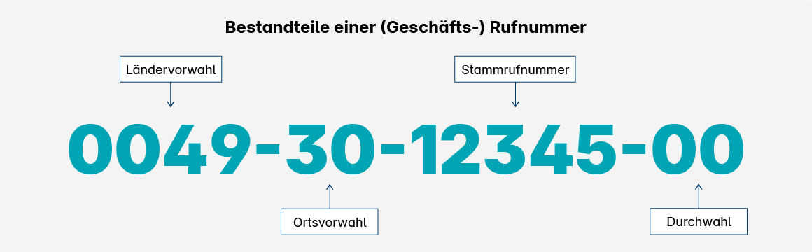 Telefone (und andere Geräte, die über das Telefonnetz Daten austauschen) müssen eine weltweit einzigartige Rufnummer besitzen, damit eine Verbindung stets eindeutig hergestellt werden kann. Deshalb gibt es Ländervorwahlen (0049 oder +49 für Deutschland) und Ortsvorwahlen, die den jeweiligen Rufnummern vorangestellt sind. Insbesondere, wenn Sie einen Rufnummernblock portieren wollen, werden Ihnen jedoch noch andere Bestandteile einer Rufnummer begegnen, die wir Ihnen kurz an einem Beispiel erläutern wollen: